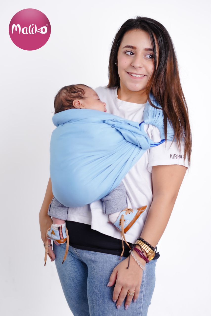 - Malika ring slings are the quickest and simplest way to wear your little one. There are no buckles or complicated wrap , with a little practice you'll be able to quickly and safely position your baby in seconds. - Suitable from newborn to 15 kg. -Supports multiple ergonomic positions like front-carry (tummy-to-tummy) , back ,and hip carry. -Floating pleated shoulder. -Durable Aluminum Rings . - 100% Cotton Fabrics .